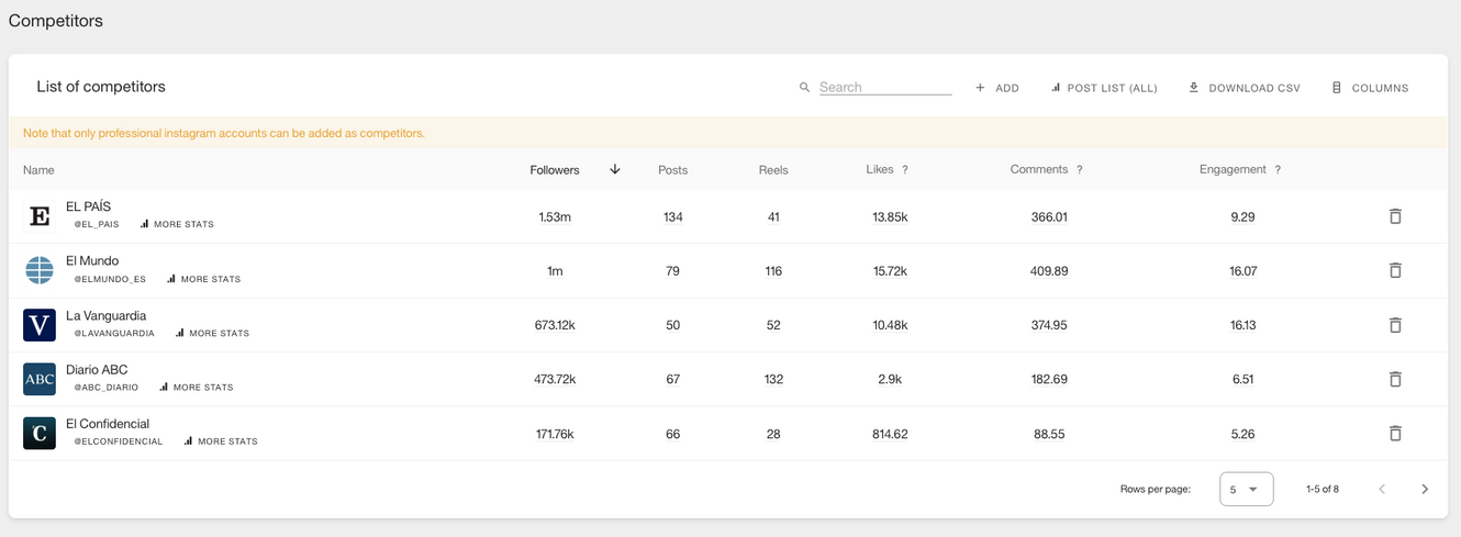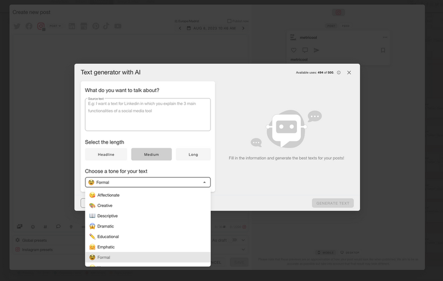 Ook alles beschikbaar via de metricool app